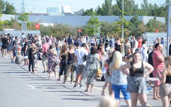 E fuori da alcuni centri commerciali si sono formate lunghe file