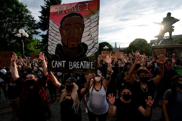 Ma le proteste, partite da Minneapolis, continuano in diverse città degli Stati Uniti. Primi tafferugli si sono registrati anche a Philadelphia, dove alcuni manifestanti hanno dato alle fiamme due auto della polizia e compiuto dei saccheggi. Gli agenti hanno reagito con gas lacrimogeni e proiettili di gomma. Disordini anche ad Atlanta. Nuova, imponente manifestazione di protesta, poi, a New York. Migliaia di persone sono scese in piazza, in particolare a Manhattan e a Brooklyn, e sono stati registrati alcuni momenti di tensione. In diverse città, alcuni dirigenti di polizia e agenti si sono uniti ai dimostranti in segno di solidarietà. A volte chinandosi su un ginocchio - un atto di protesta popolare nel mondo sportivo per denunciare le iniquità razziali - come hanno fatto due agenti nel Queens, a New York, rimanendo in cerchio mentre venivano letti i nomi di altri afroamericani uccisi dalla polizia, come Trayvon Martin e Philando Castile. In Michigan, lo sceriffo della contea di Genesee Chris Swanson ha marciato con i dimostranti, come pure il capo della polizia di Norfolk, in Virginia. In ginocchio anche alcuni agenti al Lafayette park nella capitale, davanti alla Casa Bianca, a Miami e a Santa Cruz.