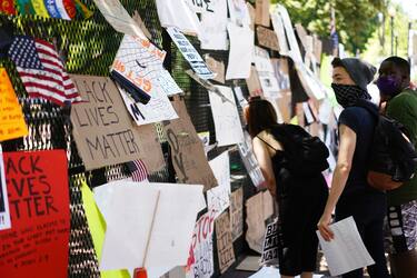 Morte George Floyd, muro della Casa Bianca diventa un memorial. FOTO
