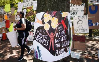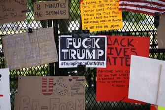I dimostranti hanno utilizzato la recinzione installata a Lafayette Square, che circonda la residenza del presidente Usa, per appendere foto, ritratti, cartelli con slogan contro il razzismo e in ricordo dell'uomo ucciso dalla polizia. LA FOTOGALLERY