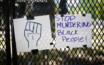 Sulla rete che circonda la Casa Bianca a Washington sono stati attaccati foto, ritratti, cartelli con gli slogan della protesta