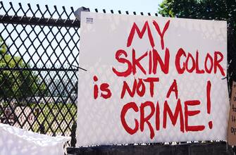 "Il colore della mia pelle non è un crimine". I manifesti ricordano Floyd e mostrano slogan contro il razzismo
