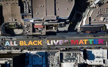 Hollywood, grande scritta arcobaleno: “All black lives matter”. FOTO