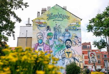 Un collettivo di street artist ha ringraziato così gli operatori sanitari impegnati in prima linea contro la pandemia. L'opera è stata realizzata a pochi metri dall'ospedale di Ixelles, nella periferia della capitale belga