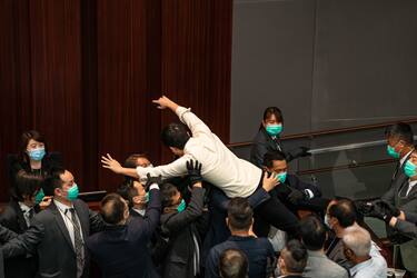 Hong Kong: scontri in Parlamento tra deputati. FOTO
