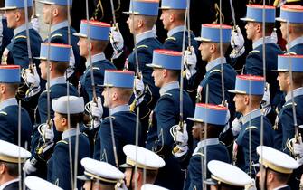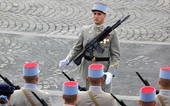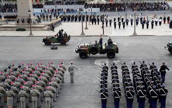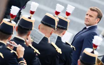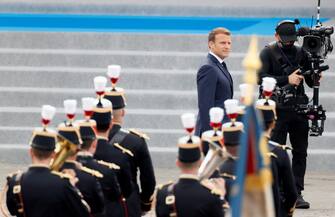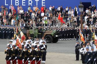 Come da tradizione il presidente, che è anche il comandante in capo delle Forze armate francesi, ha passato in rassegna le truppe prima di prendere posto sul palco d'onore