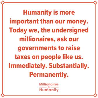 "Abbiamo i soldi, e ne abbiamo molti", si può leggere nell'appello. Il testo della lettera può essere letto integralmente sul sito millionairesforhumanity.com/