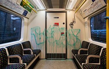 L'artista di Bristol s'è visto cancellare per errore un graffito. L'opera era stata realizzata a bordo di un vagone della metropolitana di Londra ed affrontava il tema del Covid-19. LA FOTOGALLERY