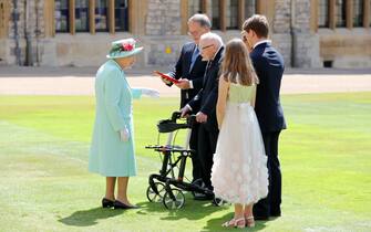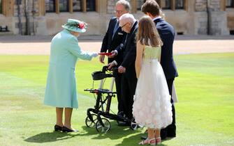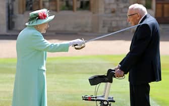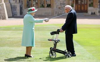 L'uomo aveva raccolto più di 33 milioni di sterline per il Sistema sanitario nazionale duramente impegnato nella lotta al coronavirus, promettendo di camminare per 100 giri, aiutato dal suo deambulatore, nel giardino di casa. Ora la cerimonia presieduta a Windsor dalla sovrana in persona, al suo primo impegno pubblico dopo il lockdown
