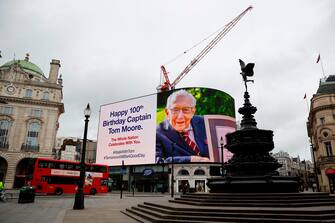 E a Londra, a Piccadilly Circus, è apparsa una gigantesca scritta luminosa per rendergli omaggio nel giorno del suo 100esimo compleanno