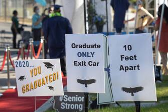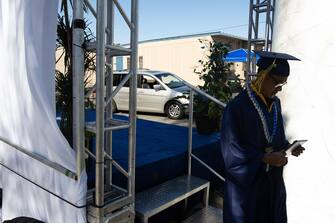 Una cerimonia di diploma del liceo diversa dal solito: è successo a Whittier, in California, dove i ragazzi che hanno concluso il percorso di studi hanno potuto ritirare la certificazione, ma senza il solito pubblico. Famiglie e amici, infatti, sono dovuti rimanere all’interno delle loro auto, per garantire il distanziamento sociale