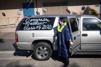 A Whittier, in California, i ragazzi che hanno concluso il percorso di studi hanno potuto ritirare la certificazione, ma con alcune modifiche all'evento. Genitori e amici, infatti, sono dovuti rimanere all’interno delle loro auto, per garantire il distanziamento sociale