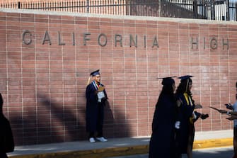 I ragazzi della California High School sono saliti sul palco a ritirare il diploma, mentre i genitori e i loro amici sono rimasti nelle macchine dove, muniti di cellulare, hanno scattato foto