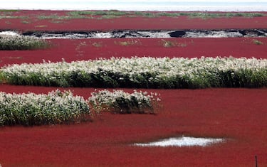 La spiaggia rossa di Panjin è sul delta del Liaohe River, a circa 30 chilometri a sudovest di Panjin City