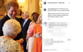 Anche la nonna, la regina Elisabetta II, dall’account ufficiale della Royal Family ha mandato i suoi auguri postando una foto che la ritrae di spalle, a un evento nel 2017, di fronte al nipote che ride