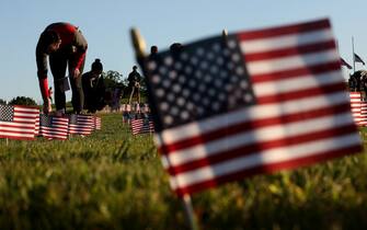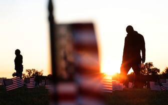 A sistemare le bandiere Usa sono stati i volontari del “Covid Memorial Project”