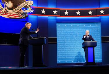 Dalle facce di Trump all’orologio di Biden, il confronto tv in 10 foto