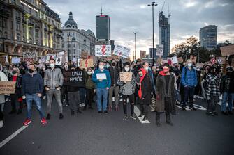 A Varsavia il traffico è stato fermato in diversi incroci del centro. "Siamo in guerra per i diritti delle donne" è uno degli slogan gridato dai manifestanti