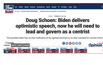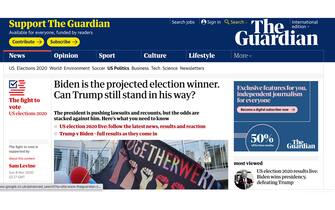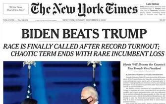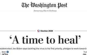 "Per l'America è ora di guarire", è il titolo in homepage del Washington Post, che cita il discorso di Biden e parla di "trionfo su Trump" del ticket democratico, che "ricostruisce il muro blu" vincendo Pennsylvania, Michigan e Wisconsin. Secondo il giornale, Biden "ha intenzione di firmare subito una serie di ordini esecutivi dopo essersi insediato il 20 gennaio, facendo capire immediatamente che le politiche del Paese hanno svoltato e che la sua presidente sarà guidata da priorità radicalmente diverse”