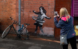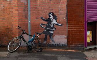Banksy, a Nottingham rubata una bicicletta dall’opera “La bambina con l’hula hoop”. FOTO