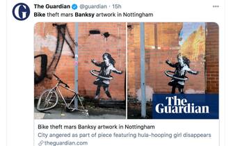 Una bicicletta legata a un cartello, che faceva parte dell’installazione di Banksy “La bambina con l’hula hoop” è scomparsa dalla città di Nottingham. Solo un mese fa l'artista aveva rivendicato l’opera