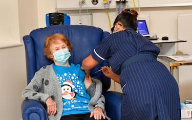 La prima persona a essere stata vaccinata è Margaret Keenan, che compirà 91 anni la settimana prossima: ha ricevuto la dose alle 6:31 (le 7:31 in Italia) nell'Ospedale universitario di Coventry