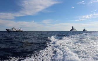 I due pescherecci sono scortati dalla fregata Margottini della Marina Militare