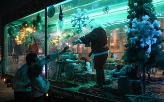 A Tel Aviv, in Israele, Babbo Natale è in una teca per evitare contatti e combattere il coronavirus