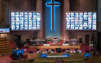 A Seul, in Corea del Sud, le chiese sono vuote ma i fedeli possono assistere alla funzione in collegamento video