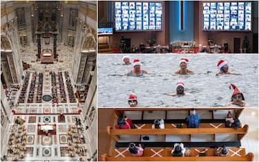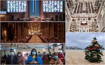 Dall’albero sulla spiaggia in Australia ai fedeli che assistono alla messa in streaming in Corea del Sud, dal tuffo in acqua in Svizzera al Babbo Natale nella teca in Israele: in tutto il mondo si festeggia il Natale nonostante le restrizioni imposte dall’emergenza coronavirus. E nelle chiese dei vari Paesi, le messe si celebrano tra mascherine e distanziamento