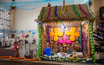 Posti distanziati anche durante la messa di Natale a Bali, in Indonesia