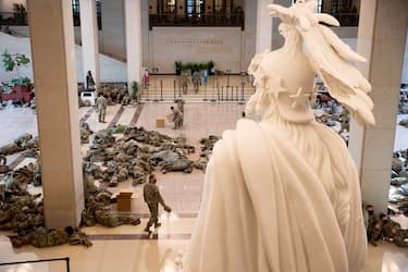 Usa, i soldati della Guardia Nazionale dormono nel Congresso. LE FOTO