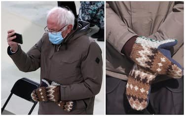 Insediamento Biden, i guanti di Bernie Sanders spopolano sui social