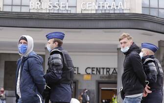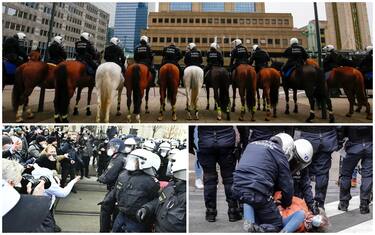 Imponente lo schieramento di forze dell'ordine alla Stazione centrale, dove diversi dimostranti sono stati identificati e arrestati appena scesi dai treni e a Mont des Arts