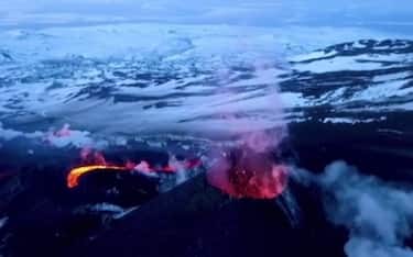 La lava incandescente ribolle e sgorga da un piccolo cono nella valle di Geldingadalur, accumulandosi nel bacino e diventando lentamente un mare nero e denso mentre si raffredda. Finora, secondo gli esperti, circa oltre 300.000 metri cubi di lava si sono riversati dal terreno, sebbene l'eruzione sia considerata relativamente piccola e controllata.