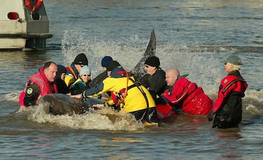 A poco è servita, dunque, l'ingente operazione condotta per cercare di liberare la balenottera dopo che si era arenata per la seconda volta in meno di 24 ore. Centinaia di persone, nel sobborgo londinese di Richmond, avevano assistito nella notte tra il 9 e il 10 maggio ai primi soccorsi, durati sette ore. Più tardi, il mammifero marino però si è ritrovato di nuovo prigioniero in un tratto basso del fiume.