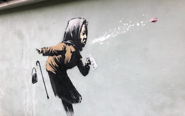 Love is in the Air di Banksy aggiudicato per 13 milioni di dollari nella prima asta anche in criptovalute