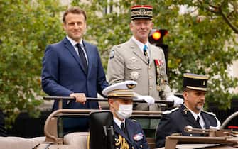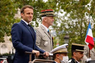 Nella foto, il presidente Emmanuel Macron con il generale Francois Lecointre, durante il saluto alle truppe prima dell'inizio della sfilata. Macron ieri ha varato nuove misure per far fronte all'aumento dei contagi trainato dalla variante Delta. Si dovrà mostrare un certificato di negatività al test o di completamento del ciclo vaccinale anche per entrare in caffè, ristoranti, centri commerciali, ma anche mezzi pubblici come aerei e treni a lunga percorrenza. Arriva anche l'obbligo di vaccinazione per il personale sanitario da settembre