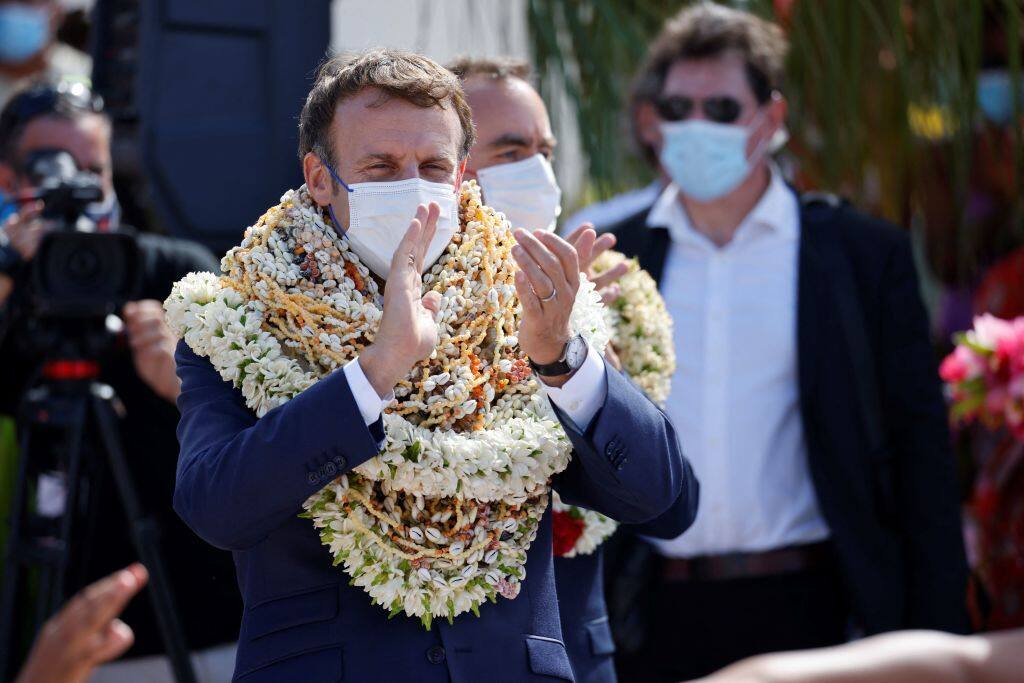 Hanno fatto il giro dei social di tutto il mondo le immagini del presidente francese riempito di ghirlande da parte dei funzionari locali in segno di accoglienza. Macron ha proseguito il suo tour nella Polinesia francese con una visita all'isola di Manihi
