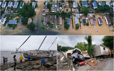 Da uragano di categoria 1 Henri è stato retrocesso a tempesta tropicale prima dell'impatto contro il piccolo stato di Rhode Island. Ma il suo avanzare, un mostro dal diametro di oltre 200 chilometri, fa comunque paura. Con le sue raffiche di vento a oltre i 100 chilometri orari, le sue piogge torrenziali e il muro d'acqua che sale dall'Oceano, tutta la costa nordorientale degli Stati Uniti è in allerta (nella foto, i danni in New Jersey)