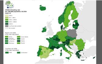 Nuovo aggiornamento del Centro europeo per il controllo e la prevenzione delle malattie, che classifica le zone a maggiore o minore pericolo di diffusione del coronavirus. Nel nostro Paese tornano verdi Piemonte, Lombardia e Molise, che si vanno ad aggiungere alla Valle d’Aosta, già inserita nella fascia di minor rischio. Rimangono in rosso Basilicata, Calabria e Sicilia. Spiccano in verde la Danimarca, quasi tutta la Repubblica Ceca, buona parte dell'Ungheria e le Asturie in Spagna. Rosso scuro per la Slovenia