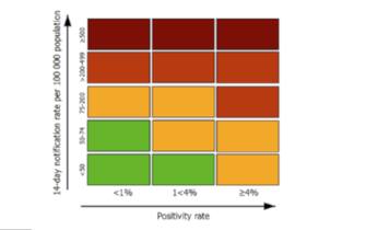 Migliora la situazione dell’Italia nella mappa epidemiologica dell'Ecdc, il Centro europeo per il controllo e la prevenzione delle malattie, che classifica le zone a maggiore o minore pericolo di diffusione del coronavirus. Ecco, nella foto, la mappa che combina tre indicatori: incidenza dei casi positivi ogni 100mila abitanti negli ultimi 14 giorni, percentuale di test effettuati e tasso di positività