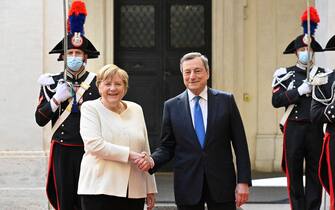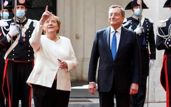 Dopo l'incontro con Papa Francesco, Angela Merkel è stata ricevuta a Palazzo Chigi dal presidente del Consiglio Mario Draghi, che ha definito la cancelliera "una campionessa del multilateralismo quando altri Paesi si schierarono con il protezionismo" e "un esempio per tante ragazze e tante donne interessate alla politica". Draghi ha ricordato come "in questi anni la cancelliera ha saputo guidare la Germania e l'Unione europea, con calma determinazione e sincero europeismo"
