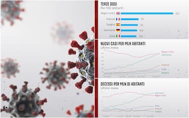 La campagna di vaccinazione contro il Covid prosegue in tutta Europa, con differenze tra Paese e Paese. Molti Stati, per fronteggiare la quarta ondata, stanno cercando di accelerare sulle terze dosi. Mentre su prime e seconde dosi l’Italia è dietro alla Spagna ma più avanti di Francia, Regno Unito e Germania, sulla dose aggiuntiva il nostro Paese è indietro: è a 6,5 terze dosi per 100 abitanti, mentre in Uk sono a 22,1