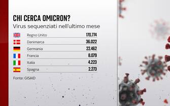 Sempre secondo Gisaid, in Italia sono stati sequenziati 4.223 tamponi positivi per cercare la variante Omicron. Guardando agli altri Paesi, al primo posto c’è il Regno Unito, che ne ha analizzati oltre 170mila