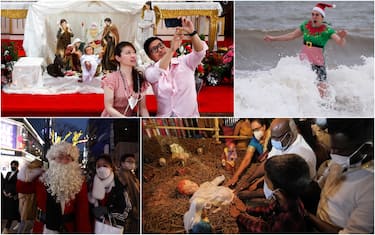Dalle messe in chiesa o all’aperto, ai tuffi in laghi o acquari, ai travestimenti da Babbo Natale: gli scatti più belli del 25 dicembre dai diversi Paesi