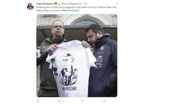 Poi c'è chi inverte i protagonisti, facendo indossare a Putin una maglia con la faccia di Salvini