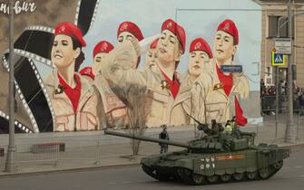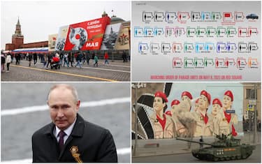 Secondo il programma diffuso dal ministero della Difesa, otto MiG-29SMT si alzeranno in volo sulla Piazza Rossa, cuore dell'impero sovietico prima e della Russia oggi, a formare la lettera "Z", simbolo del sostegno a quella che Mosca da subito ha imposto di chiamare "operazione militare speciale" in Ucraina. (Nella foto i mezzi militari provano il percorso in vista della parata)