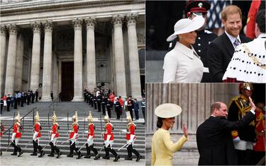 Presente anche il fratello minore di William, Harry, di ritorno nel Regno con la moglie Meghan dopo il trasloco negli Usa e lo strappo di due anni fa, rimasto ieri fuori dai riflettori avendo rinunciato al ruolo di membro senior del casato. La coppia è stata accolta calorosamente da vasti settori della folla che ha assistito agli arrivi delle personalità alla cattedrale di St Paul