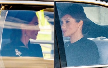 Mentre i reali seguivano a piedi le spoglie di Sua Maestà, Kate e Meghan sono arrivate a Westminster Hall a bordo di auto separate, come protocollo impone